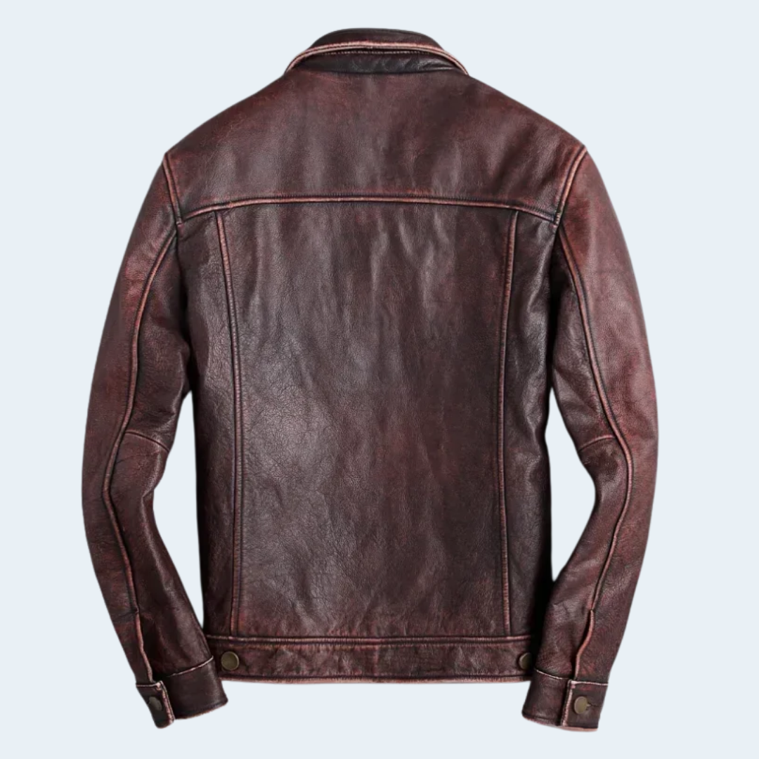 Biruvi | Men’s Barger Vintage Leather Jacket with Patina Finish