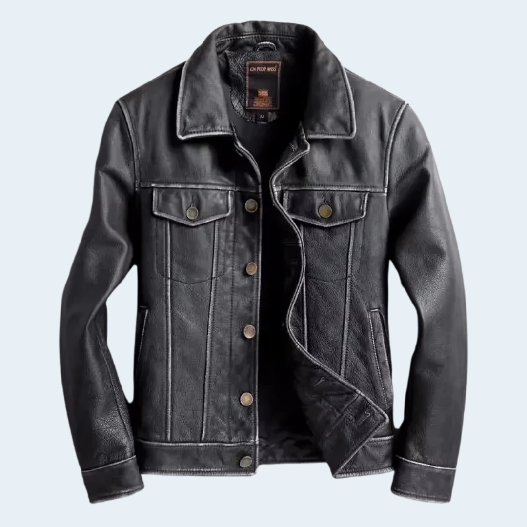 Men’s Barger Vintage Leather Jacket with Patina Finish