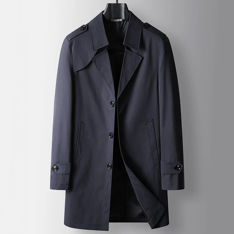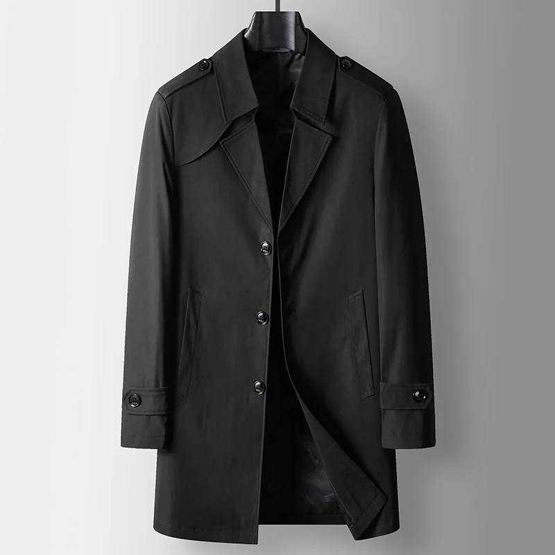 Crafted with a refined tailored drape, the Men’s Classic Tailored Mid-Thigh Wool Overcoat delivers a balanced blend of structure, comfort, and timeless sophistication. Designed with a structured fold-over collar and epaulette shoulders, it instantly elevates both casual and formal outfits. Wear it open for a relaxed, effortless aesthetic or button it for a sharp, polished finish. Built for cold-season versatility, this overcoat offers warmth, durability, and premium craftsmanship for everyday wear.