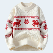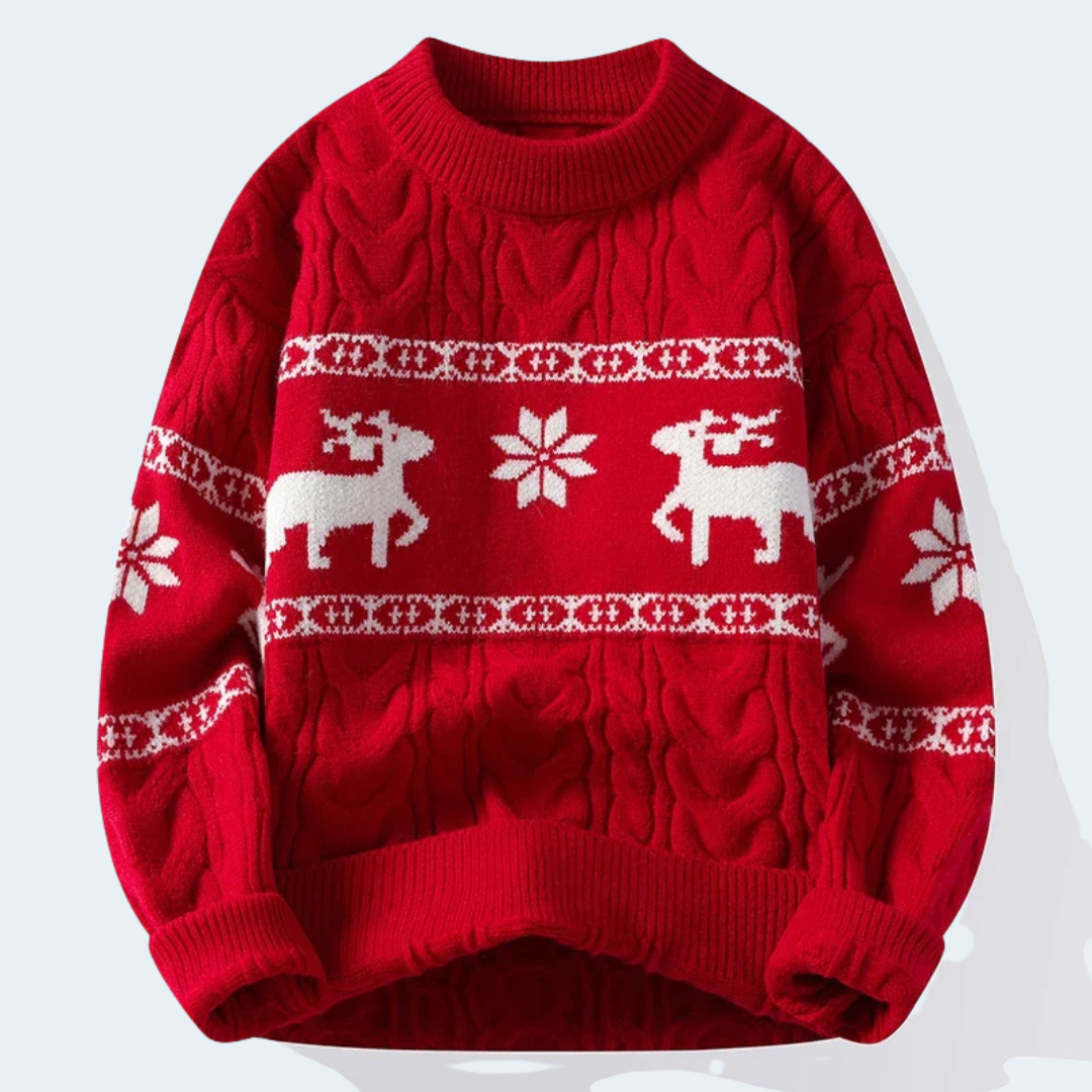 Celebrate the season in comfort with this soft, warm reindeer knit sweater designed for effortless holiday style. Crafted from a premium cashmere-blend knit, it delivers a cosy, luxurious feel while keeping you comfortably warm through winter gatherings, festive events, and relaxed days at home. The classic seasonal pattern and relaxed silhouette make it an easy holiday favourite in any knitwear collection.