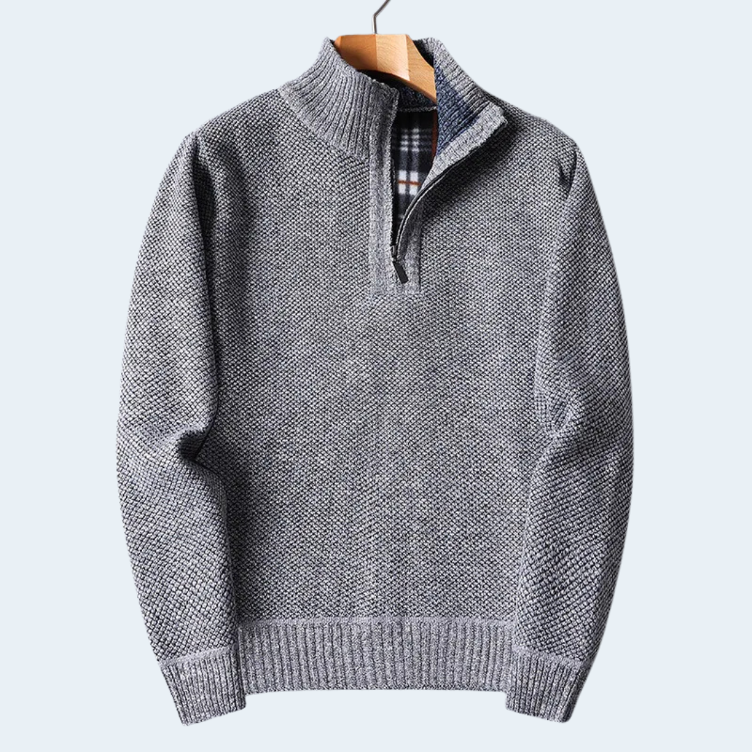 Crafted for cold-weather comfort and everyday refinement, this heritage-inspired quarter-zip knit cardigan blends thick premium fabric with a soft plaid fleece lining for exceptional warmth. Its structured silhouette, ribbed finishes, and stand collar create a timeless look that transitions seamlessly from casual weekends to polished layering. Designed for versatility, durability, and effortless styling, it’s a dependable staple you'll reach for throughout the colder seasons.