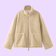 This Women’s Oversized Sherpa Teddy Jacket is made from a soft, warm sherpa fabric with a cosy wool-blend feel, perfect for layering through autumn and winter. Designed with long sleeves, a stand collar and a smooth front zipper, it offers a relaxed, easy-to-wear silhouette that delivers warmth without feeling heavy. The fabric stays soft and comfortable after repeated washes, making it a practical everyday outer layer for casual outfits and streetwear looks.