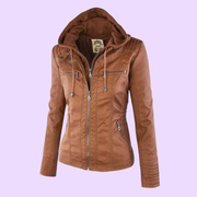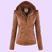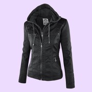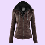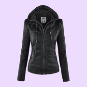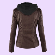 Women’s Weatherproof Leather Jacket with Removable Hood