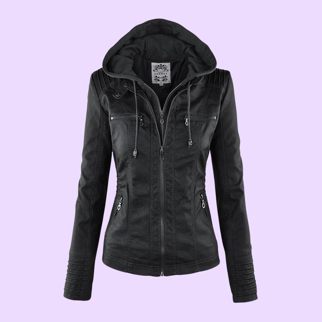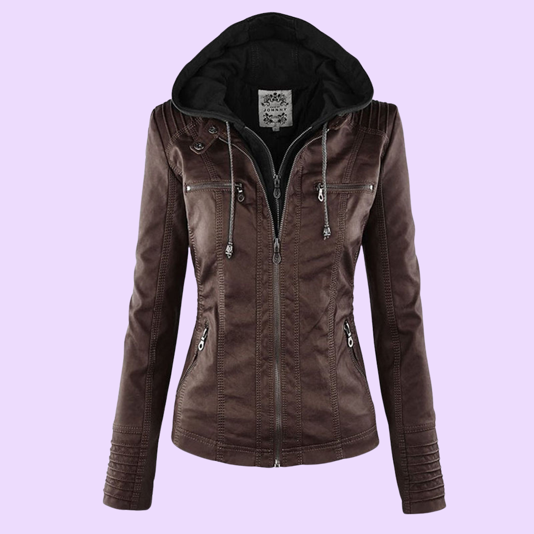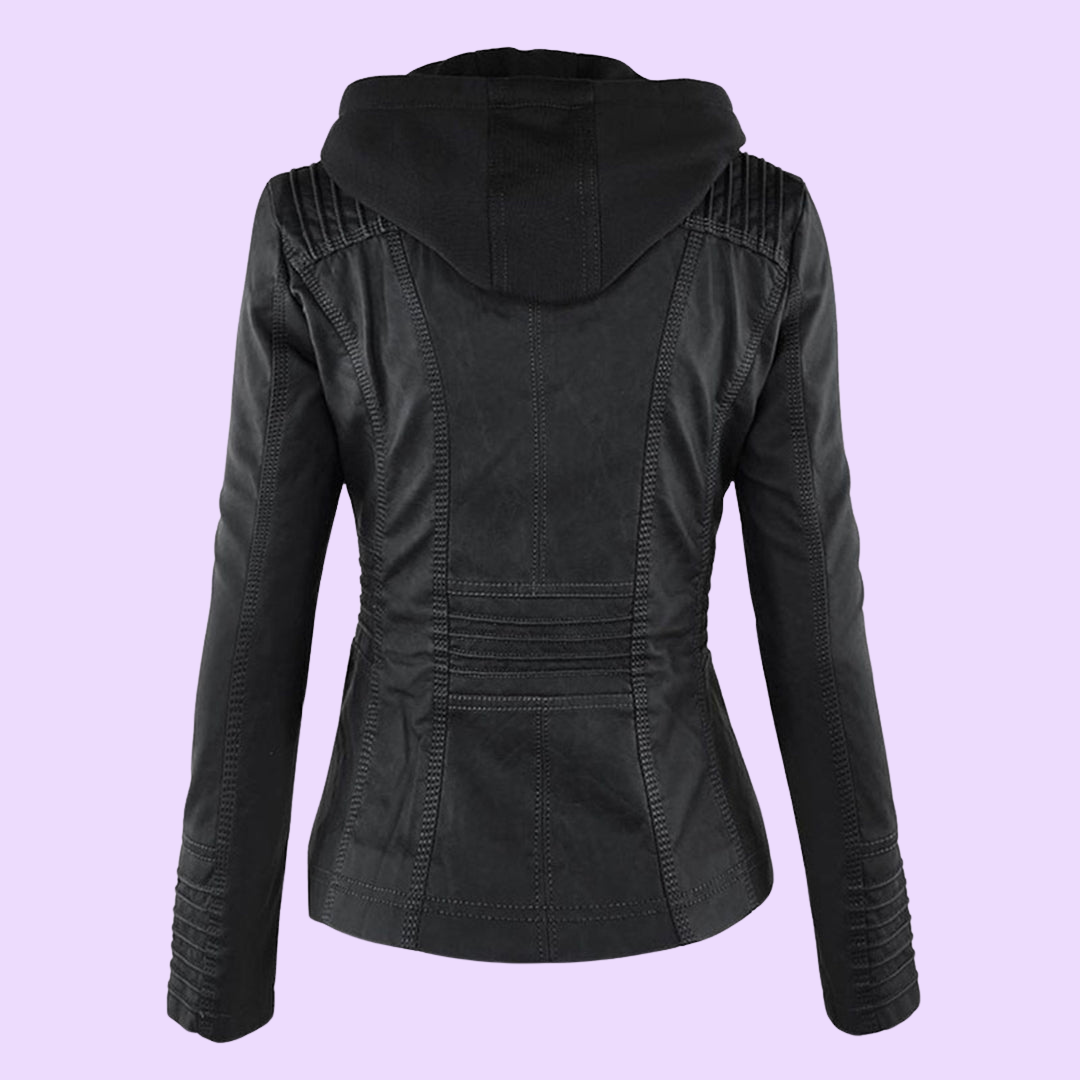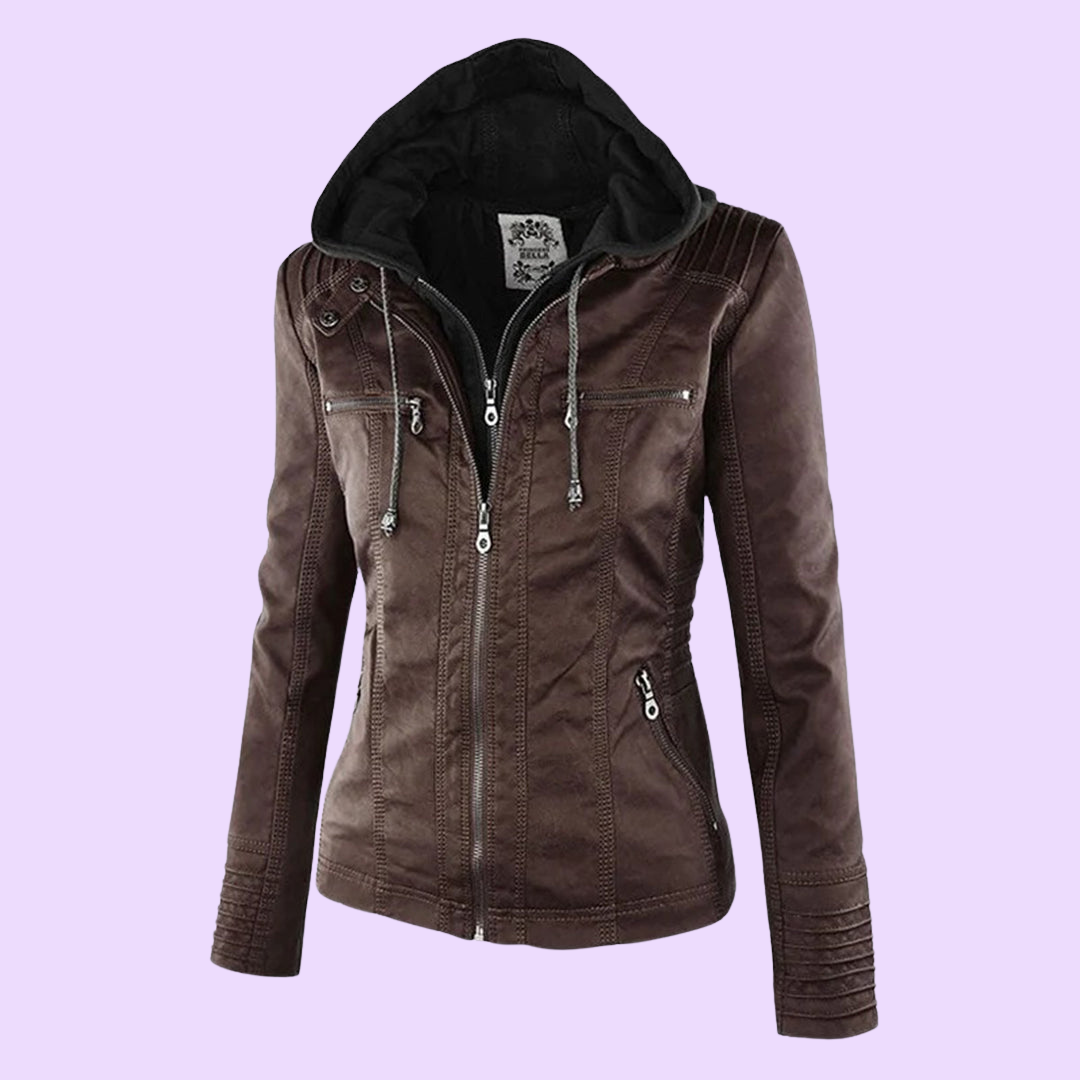 Biruvi | Women’s Weatherproof Leather Jacket with Removable Hood