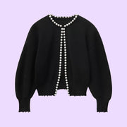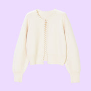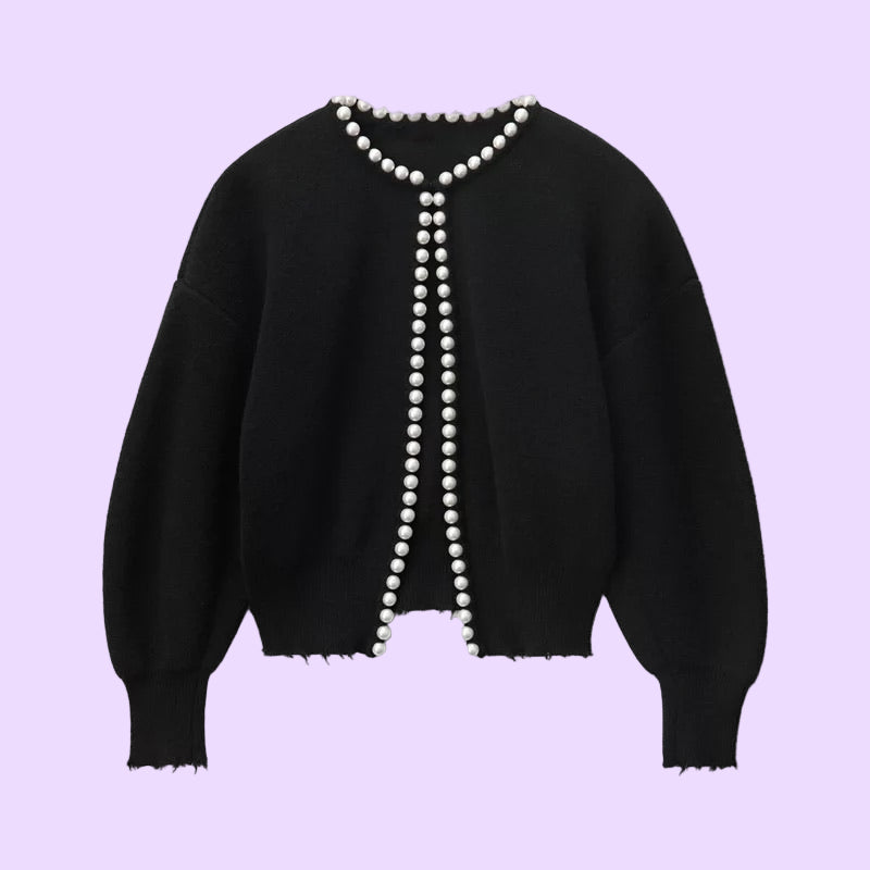 A soft knit cardigan designed with refined pearl-trim detailing for an elegant, eye-catching finish. With a relaxed yet polished silhouette, it elevates even the simplest outfit and transitions seamlessly from daytime styling to evening sophistication. Comfortable, versatile, and effortlessly chic.