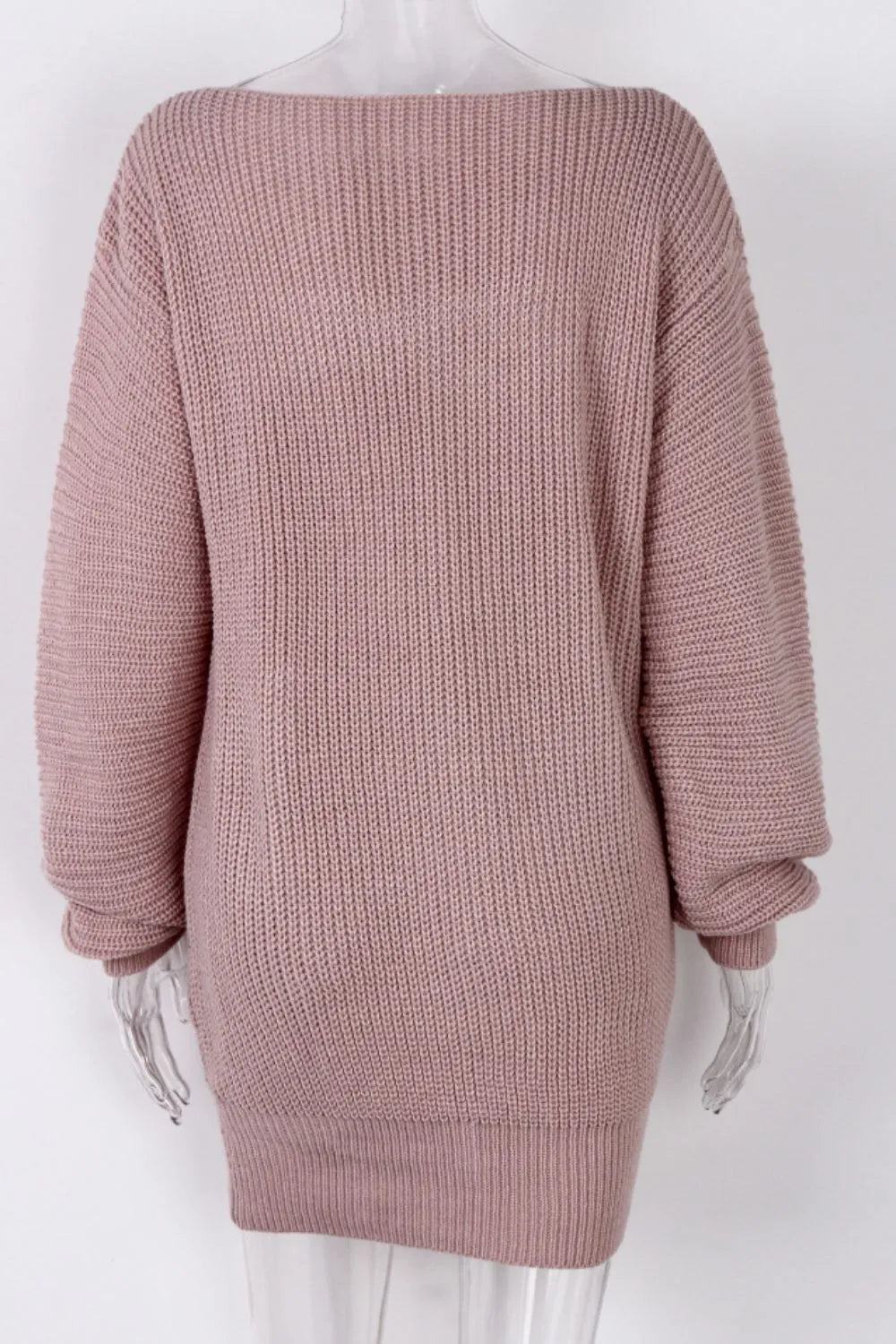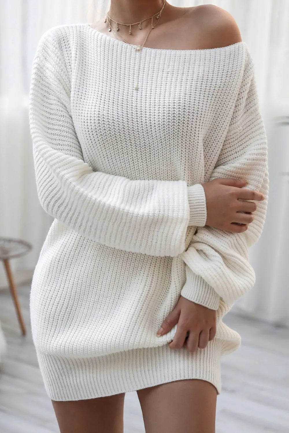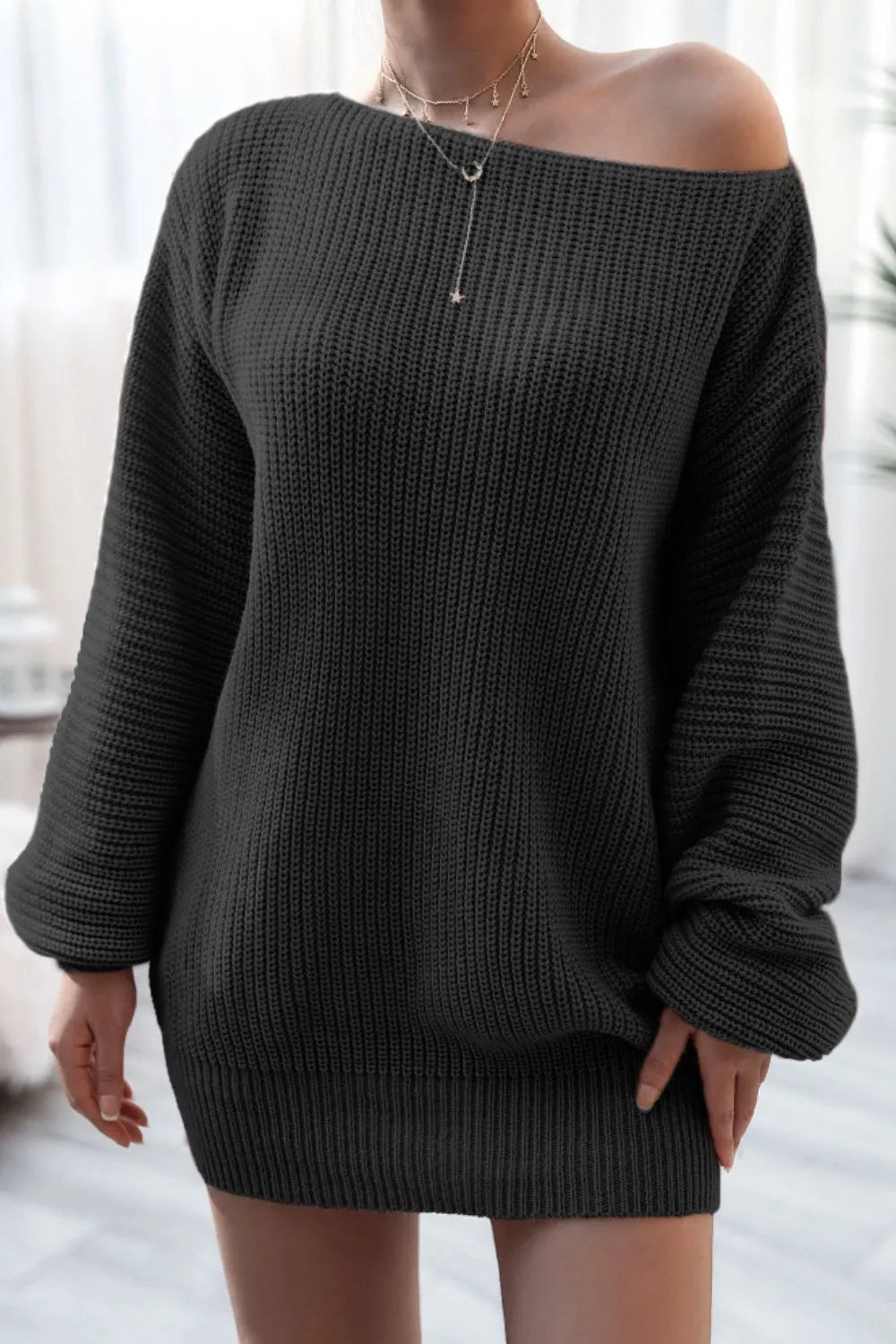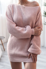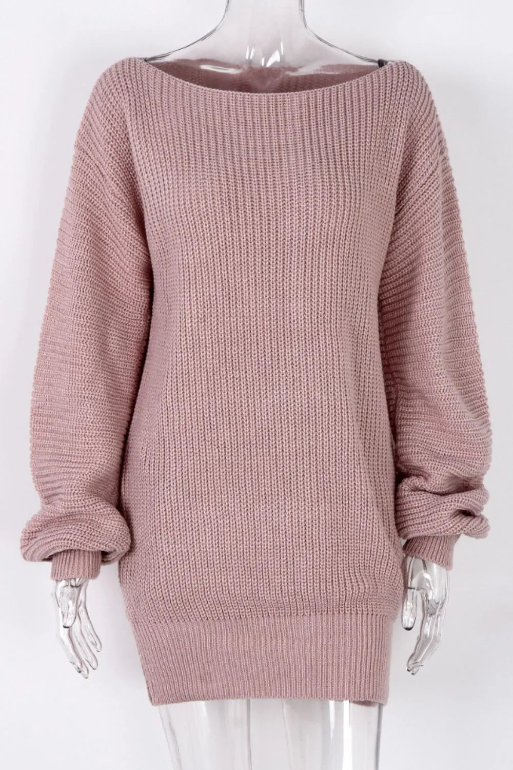 Women’s Boat Neck Long Sleeve Mini Sweater Dress